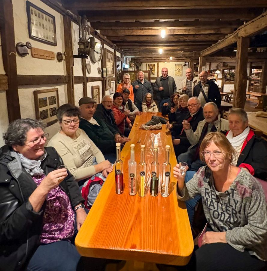 Besonderes Highlight war der Besuch der hauseigenen Schnapsbrennerei. Hier wurde den Besuchern eindrucksvoll der Brennvorgang und das rechtliche drumherum erläutert. Die kleine Verkostung im Anschluss sorgte für sichtlich gute Stimmung. Zum Abschluss ging es mit dem Bus zurück nach Kattenes, wo der Tag bei einem gemütlichen gemeinsamen Abendessen im Hotel Langen sein Ende fand. In geselliger Atmosphäre ließen die Teilnehmer den erlebnisreichen Nachmittag in froher Runde ausklingen.