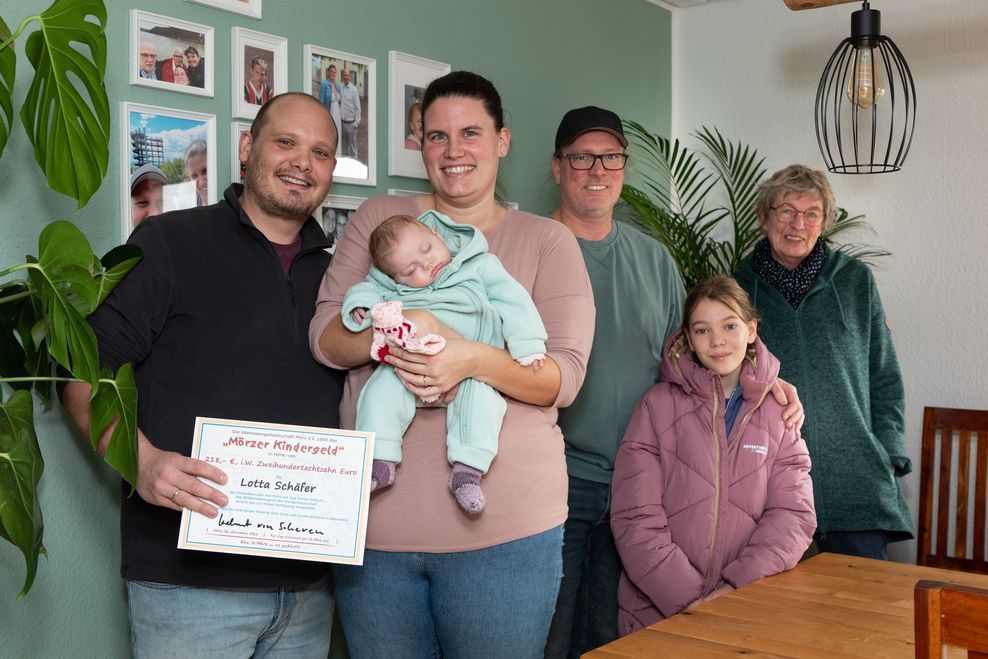 Lotta SchäferSeit 2007 zählt das sogenannte „Mörzer Kindergeld“ zu den festen Einrichtungen des Mörzer Dorflebens. Finanziert von der Interessengemeinschaft Mörz sind in dieser Zeit schon viele „Neubürger“ in den Genuss dieses Willkommensgrußes der Dorfgemeinschaft gekommen. So auch die kleine Lotta Schäfer, die am 08. September 2025 geboren wurde.
